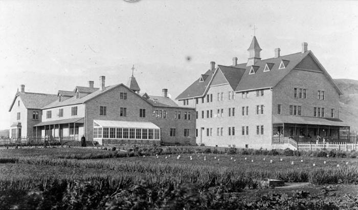 "Point is on the site of the main school and residential building that was built in 1935 and demolished in 1999. This was the third residential school building that was on this property. The location of the first industrial school building, built in 1884 to burnt down in 1904, is within 50 metres of the third school building. The second school building built in 1906 and burnt down in 1932 at the same spot as the third school building" (Orlandini, 2019). Location Credit