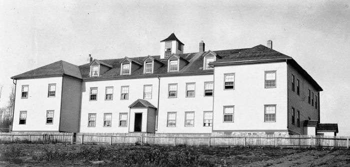 The Anglican Lac La Ronge boarding school opened at Lac La Ronge, Saskatchewan. The school burned down in 1920 and was replaced with a new school, called All Saints. The new building was poorly constructed, cold in winter, and overcrowded. Parents were also unhappy with the way the school was run: in 1934 they petitioned for a new principal. In 1947 the school burned down for a second time. Following this fire, the school was closed and the students moved to either the Gordon’s School or Prince Albert, where a former military barracks was converted into a residential school. (National Centre for Truth and Reconciliation)