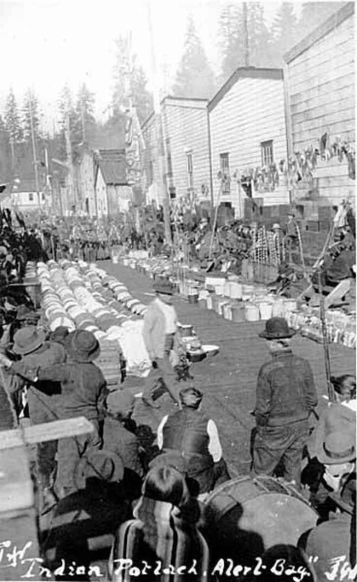 First Nations potlatch, Alert Bay, British Columbia, between 1905 and 1910. Image courtesy of Wikimedia Commons.